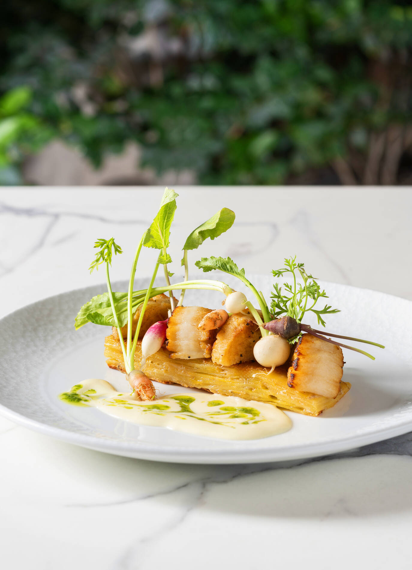 Executive chef Daniel Ontiveros' Carversteak at Resorts World Las Vegas has no shortage of patio dining, whether you choose to sit at the north or south patios or center bar. Each area offers a glittering view of the Strip surrounded by lush greenery and pink cherry blossom trees for a whimsical steakhouse experience. Though it's tempting to immediately order a sizable steak and classic steakhouse sides, frequenters say not to skip over starters such as the seared crab cake and decadent wagyu cheesesteak bites.